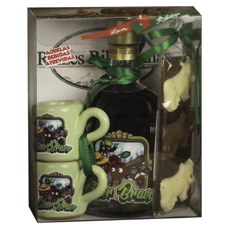 Caixa Licor Bravo (Ginjinha do Ribatejo) 20cl 2 canecas cor 3 chocolates